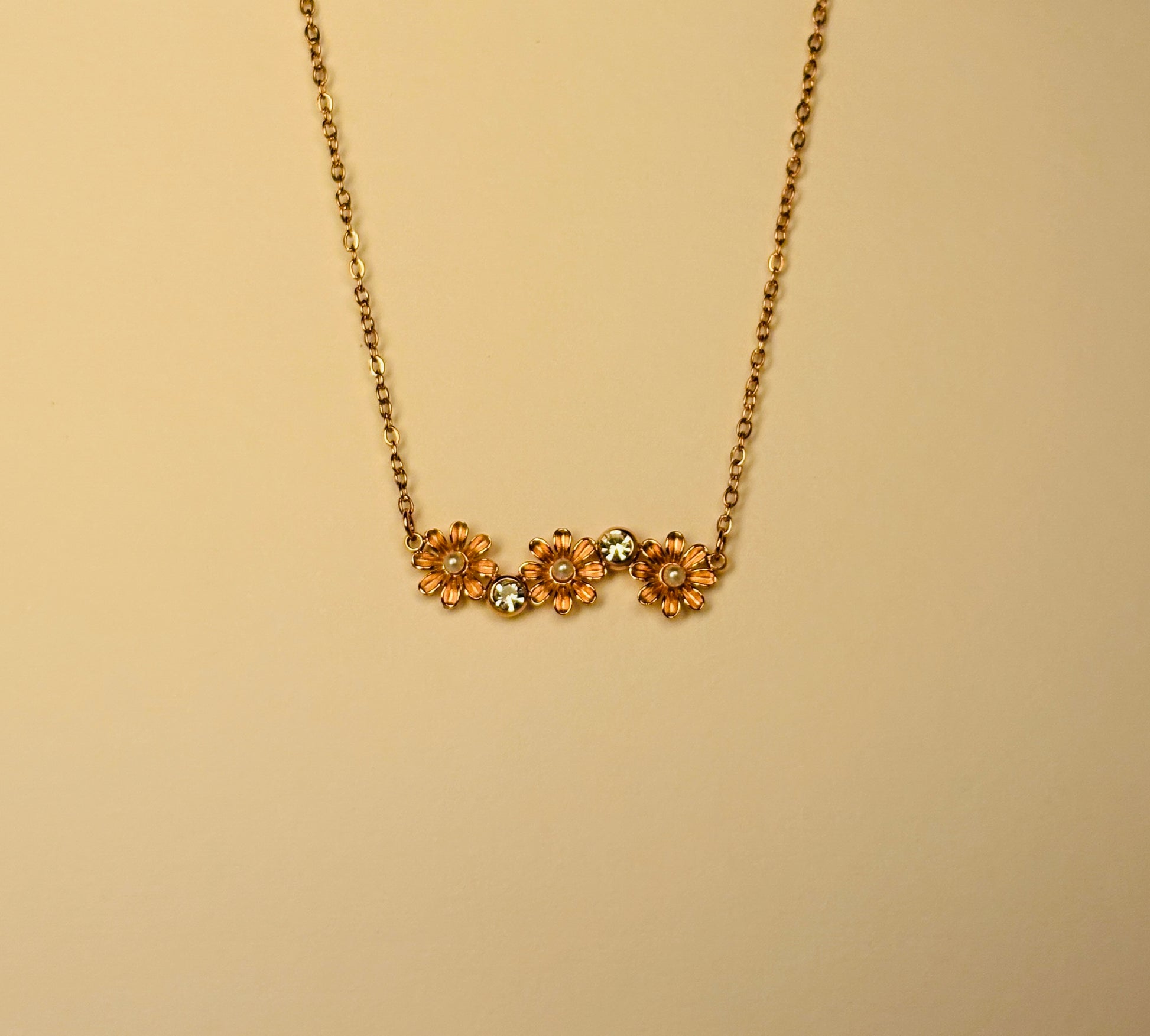 Meet the Daisy chain, a delicate blend of charm and elegance. The 18K gold plated necklace features a dainty line of floral motifs inspired by fresh daisies, crafted to perfection with subtle sparkle. Light in weight and rich in style, it's perfect for everyday elegance or layering with your favorite pieces.